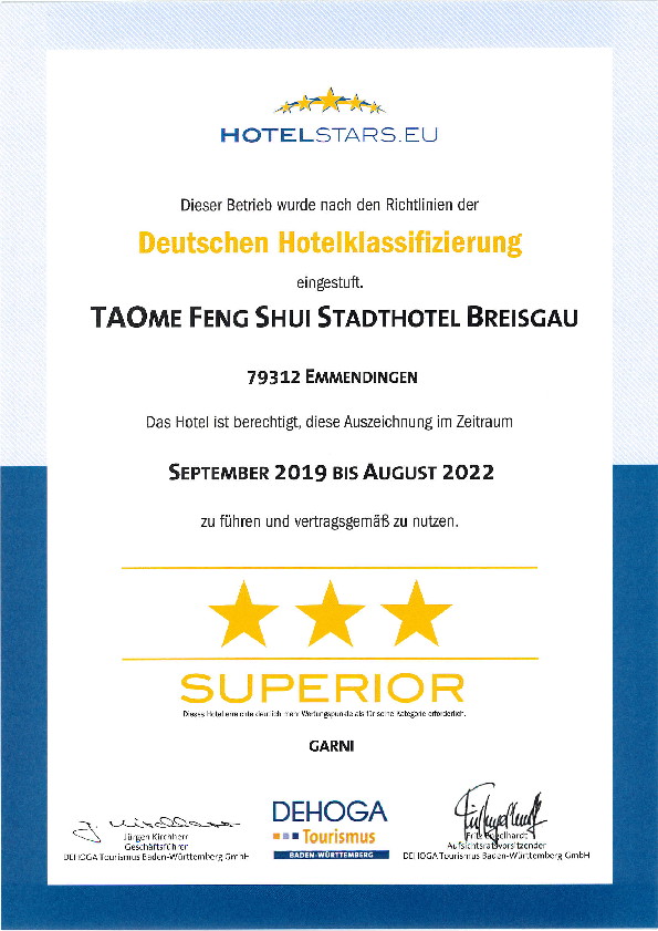 Das TAOme Hotel wurde erneut vom DEHOGA nach den neuen, strengeren Richtlinien HOTELSTARS.EU überprüft und erhielt erneut eine Einstufung als